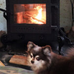 1. おのストーブ製 薪ストーブ 施工事例 No.005(高知県・カフェ・ストーブ全体と火とわんちゃんの様子)