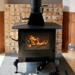2. おのストーブ製 薪ストーブ 施工事例 No.001(高知県・古民家・ストーブ全体と火が灯った様子)